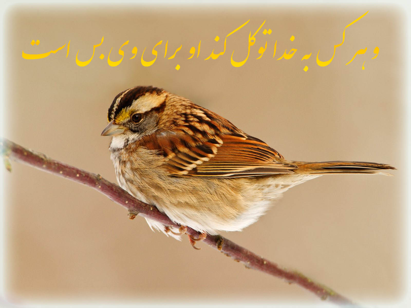 از امام موسی کاظم علیه السلام درباره کلام خدای عز و جل سوال شد که می فرمایند «و هر کس به خدا توکل کند او براى وى بس است» توکل کردن بر خدا درجاتى دارد: یکى از آنها این است که در تمام کارهایت به خدا توکل کنى و هر چه با تو کرد از او خشنود باشى و بدانى که او نسبت به تو از هیچ خیر و تفضّلى کوتاهى نمى کند و بدانى که در این باره حکم، حکم اوست، پس با واگذارى کارهایت به خدا بر او توکل کن و در آن کارها و دیگر کارها به او اعتماد داشته باش.1